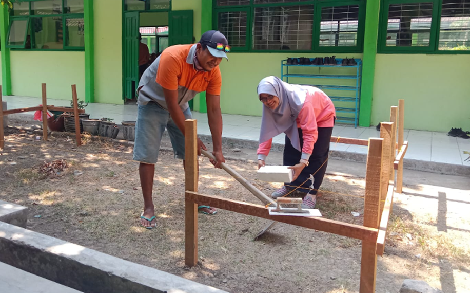 Kepala Sekolah secara simbolis menandai proses pem-bouwplank-an
